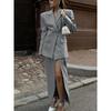 მოდური საგაზაფხულო და შემოდგომის ქალთა მოკლემკლავიანი ქურთუკი + მაღალწელიანი ჯიბის ქვედაკაბა