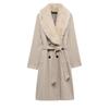 Zara Zw Series Single Breasted Minimalist Fur Collar Long Sleeve Coat Women coats Beige 2140762-710