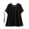 Stretch Cotton Yarn Makes You Look Top Slim! Lean Women Beads V-neck Short sleeve Pullover T-shirt Quality Summer Welfare