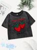 Sexy Cotton Crop Tops Womens Fruit Strawberry Printing Washed T-Shirts O-Neck Regular Fit Streetwear Y2K Womans Clothes
