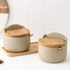 Ceramic Seasoning Jars with Wooden Lid Sugar Salt Pepper Spice Organizer Set Food Storage Tank with Spoon for Kitchen Supplies