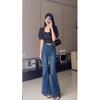 2025 Spring & Autumn Women's High-Waist Slimming Micro-Flare Jeans with Frayed Design