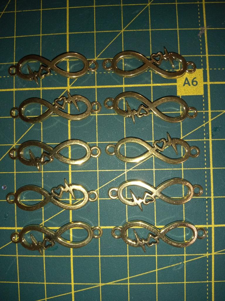 10 stk Infinity-symbol Hjerte-hjerteslag-koblingssmykker for smykker Lage antikk gullfarge 32X11mm