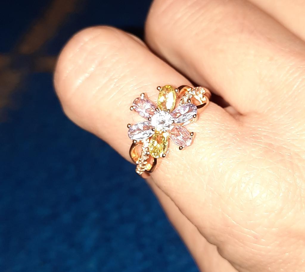 Kinel Rose Gold Rings Fargerike Zircon Flower