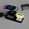 6 i 1 15W rask trådløs ladestasjon for iPhone 14 13 AirPods IWatch Samsung med vekkerklokke Fargerike LED-bordlys
