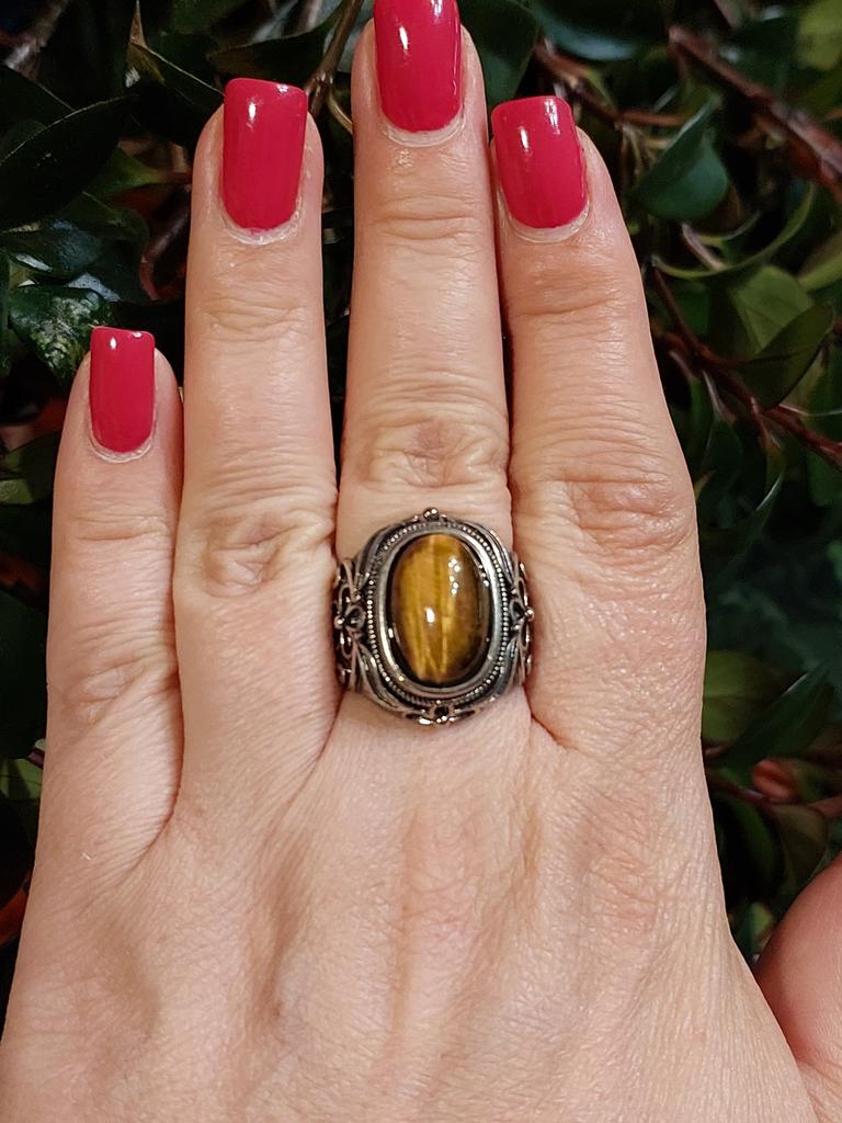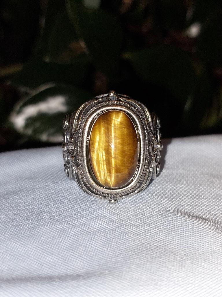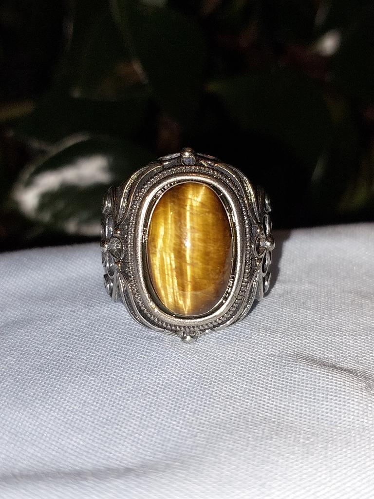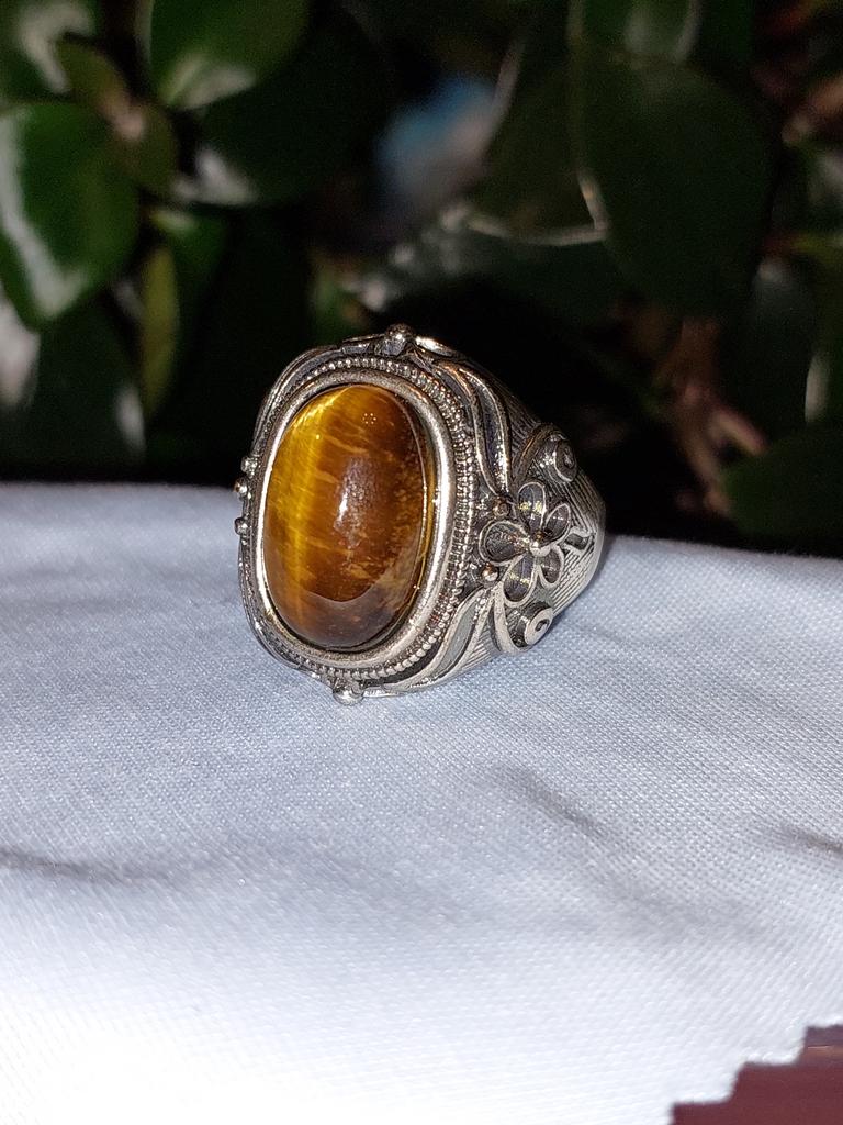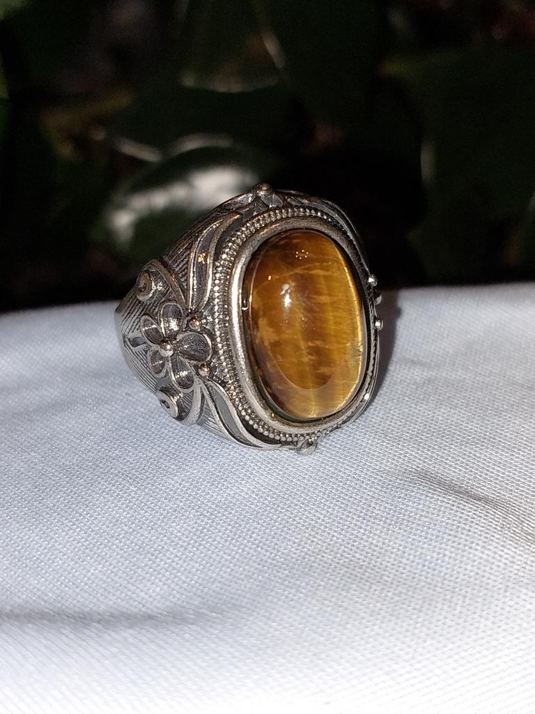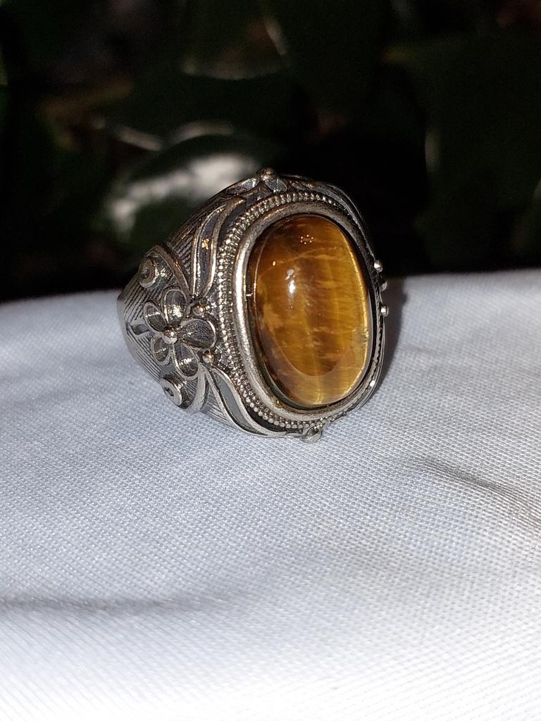 En herlig ring: en mørk stein glitrer med en edel glans. Rammen passer ham veldig godt. Takk