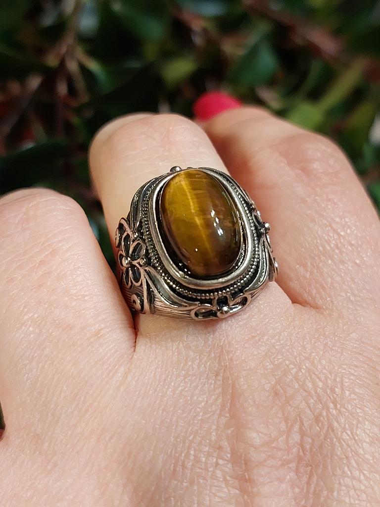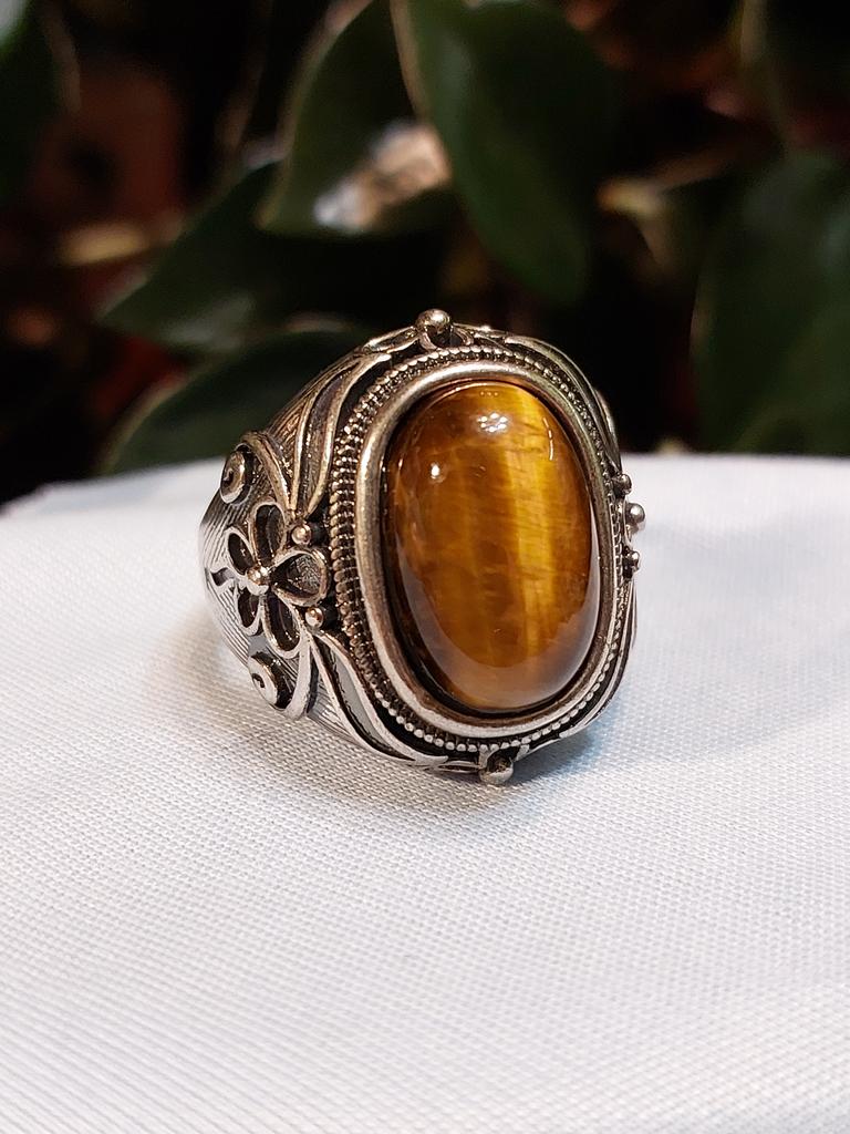 Sølvringer Naturlig 11X17MM Oval Tiger Eye Ring for Damer Menn Gave Vintage Stor Ring Fine smykker