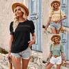 Sommer Damer Blonder Patchwork Hallow Out Kortermet Bluse Rosa Hvit Casual O-hals Damer Pullover Topp