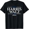 Men Black Print T-shirt Harris Walz Vice President VP Harris Retro Button Red White Blue Stars No-Cut Transfer Paper Print Cotton Tshirt
