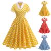 Kvinners uformelle mote V-hals Langermet Retro Polka Dot Print Retro Kjole