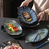 Japanese Style Ceramic Tableware Long Plate Leaf Shaped Sushi Snack Plate Barbecue Plate Fish Plate Restaurant Sushi Dishes