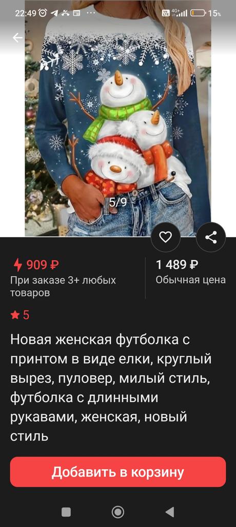 Ny dame-T-skjorte med juletremønster med rund hals genser topp søt langermet T-skjorte for kvinner, ny stil