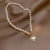 Pearl Broken Silver Brushed Metal Love Necklace Women'S Light Luxury Temperament Elegant Fashion Versatile Neck Chain Collarbone Chain
