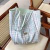 Green Cloth Bag, Women'S Fresh Literary And Artistic Large-Capacity Plaid Portable Messenger Bag, Versatile Commuter Bag