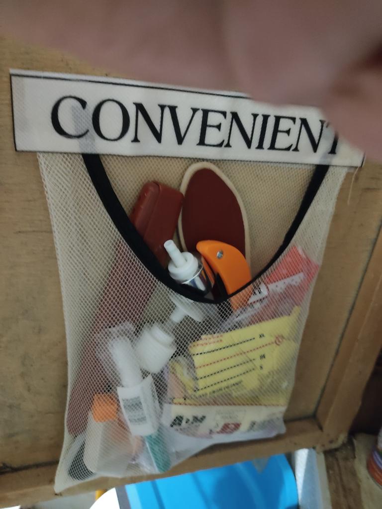 Jeg limte posen på badet på baksiden av skapdøren. Jeg bruker den til diverse småting. Men jeg skulle ha bestilt en større pose.