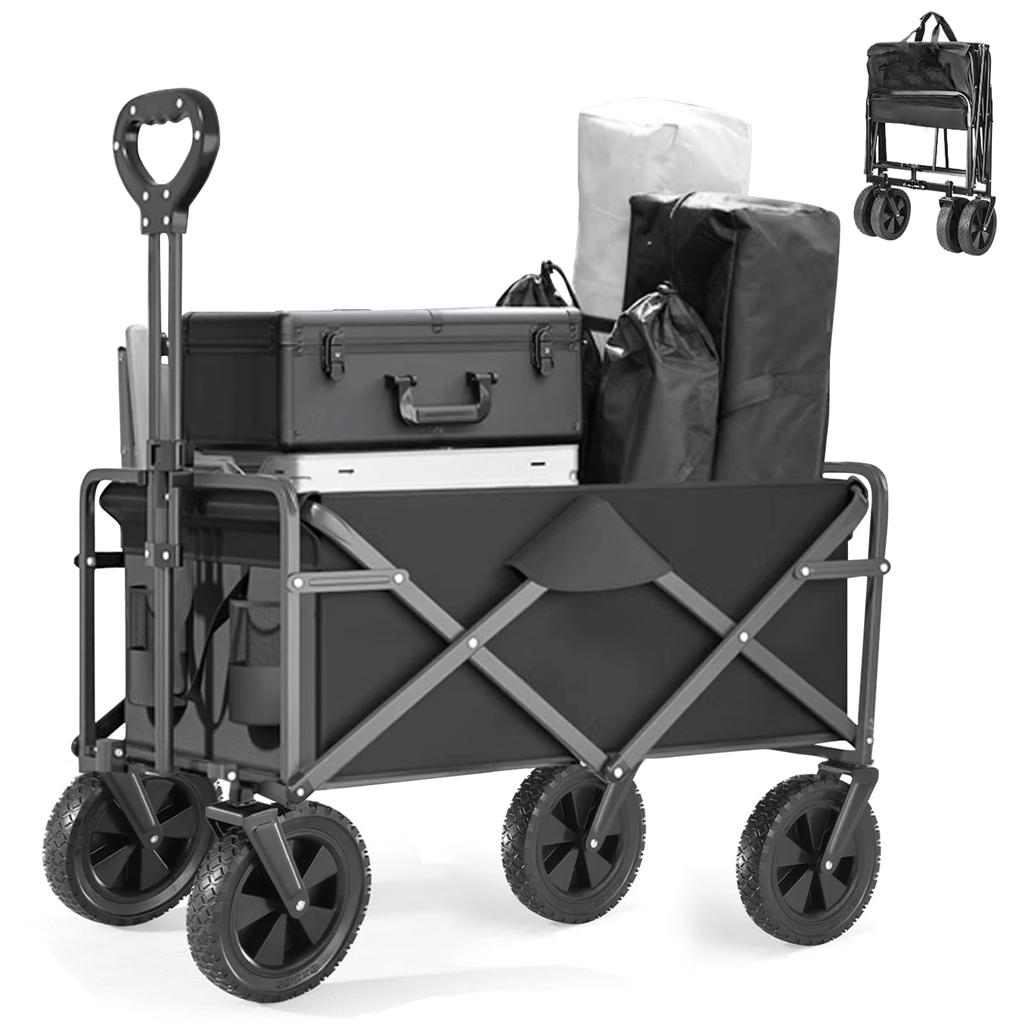 Hellozebra Carry Wagon Foldable Lightweight Capacity Capacity Carry Cart Wide Tire Stainless Steel Frame Cart Independent Design Convergence Ideal for