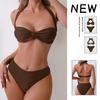 2025 Solid Color High Waist Bandeau Bodycon Bikini Set - European & American Style