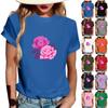 Women's Fashionable Round Neck Casual Retro Print Short Sleeved T-shirt Top