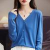 Bamboo Joint Cotton V-neck Cardigan for Women for Summer Sweater Thin Loose and Versatile Sun Protection Simple and Atmospheric Top Jacket