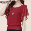 QICED Damemote Uformelt ensfarget trykk Kortermet V-hals bluser og skjorter