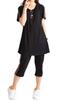 Available in sizes XXXL, 2XL, 3XL, 11, 13, 15, and 17. Available in black and red for spring, summer, and fall. Suitable for women in their 30s, 40s, and 50s. Includes short-sleeved tops, cupped pants, and loungewear. Stylish and elegant, this relaxed fit is perfect for plus-size women.