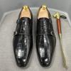 Gentleman Luxury New Black Brown Pointed Leather Shoes Men Designer Monk Strap Loafers Formal Wedding Dress Homecoming Footwear