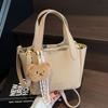 Korean new niche ins style simple lychee pattern texture portable bucket bag versatile casual foreign style messenger bag