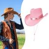Cowboy Hat with Lace-up Chin Strap Ripped Brim American Western Style Solid Color Sunscreen Anti-UV Cap Women Summer Headwear