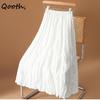 Qooth Women Gentle Solid Color Pleated Skirt Casual Elastic Waist Colorful A-line Skirt For Spring Summer QT2416