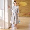 Introducing a sophisticated two-piece set that effortlessly blends contemporary elegance with traditional Chinese aesthetics. Crafted entirely from high-quality wool, this ensemble features a refined stand collar vest and a matching half skirt. The all-wool construction ensures both warmth and comfort, making it an ideal choice for transitional seasons. The stand collar adds a touch of timeless elegance, while the half skirt offers a graceful silhouette. Perfect for both formal occasions and stylish everyday wear, this set embodies a modern take on classic Chinese style.