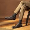 Experience the perfect blend of elegance and comfort with these genuine leather slip-on monk shoes, designed specifically for a business casual look. The footwear boasts a sleek square toe, providing a modern twist to the classic monk style. Crafted with a genuine leather upper, these shoes offer durability and sophistication. The rubber sole ensures excellent grip and flexibility, making them ideal for all-day wear. Tailored for men who appreciate style and practicality, these shoes are perfect for any professional setting or casual outing.