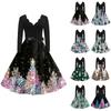 Women's Christmas Casual Fashion V-Neck Long Sleeve Printed Vintage Dresses