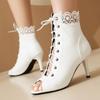 Мода Піп То Жіночі Сандалі Чоботи Чорні Білі Короткі Ботильйони На Шнурівці З Перехресним Шнуруванням Задня Блискавка Модне Вечірнє Взуття для Вечірки Жіночий Розмір 35-40
